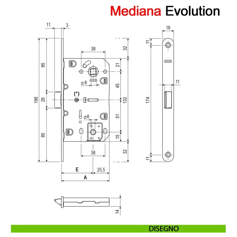 AGB Mediana Evolution Door Lock with Central Locking for Interior Door (Matt Chrome-Plated WC)