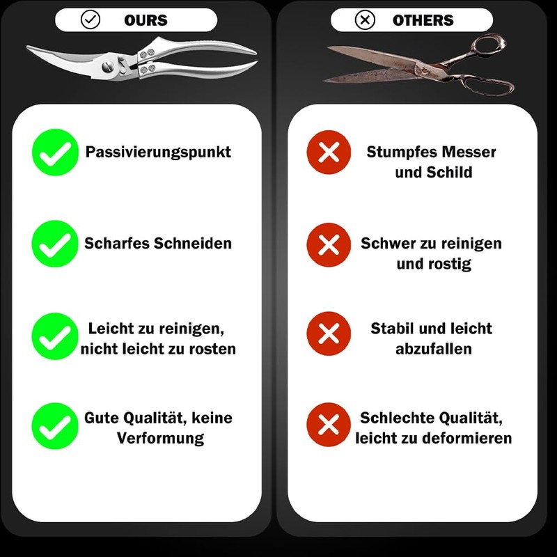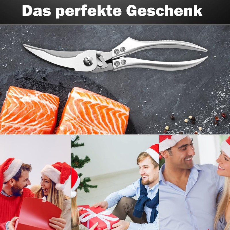 • Sharp blade: The Christmas meat scissors are very sharp and effortlessly cut through a variety of meat types and chicken bones; the prongs on the blade also help to scrape off the scales of the fish. This is very practical and saves time and work. It is an indispensable tool in the kitchen.