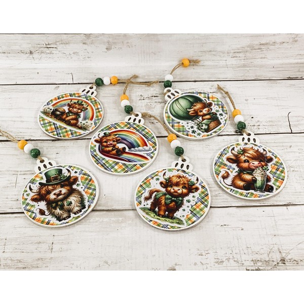 AGD St Patrick's Decor - Cute Highland Cow Ornaments 6pc Set