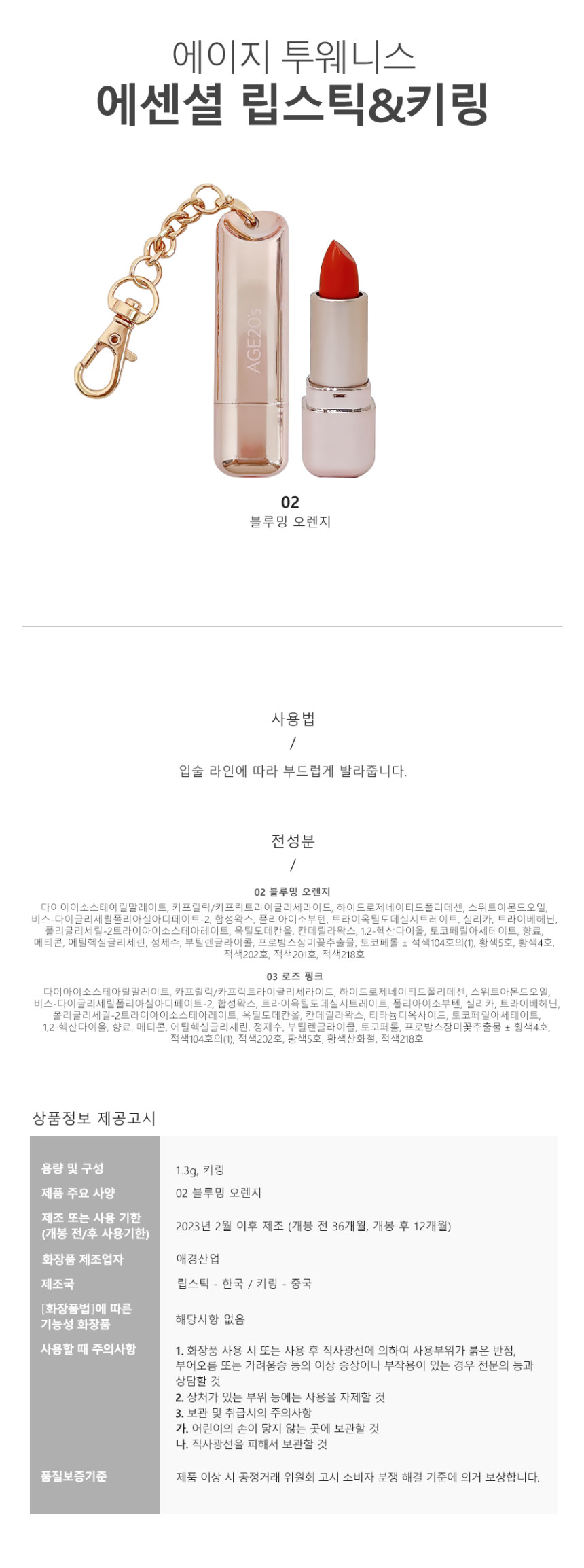 에이지투웨니스 에센셜 립스틱 키링 02 블루밍 오렌지