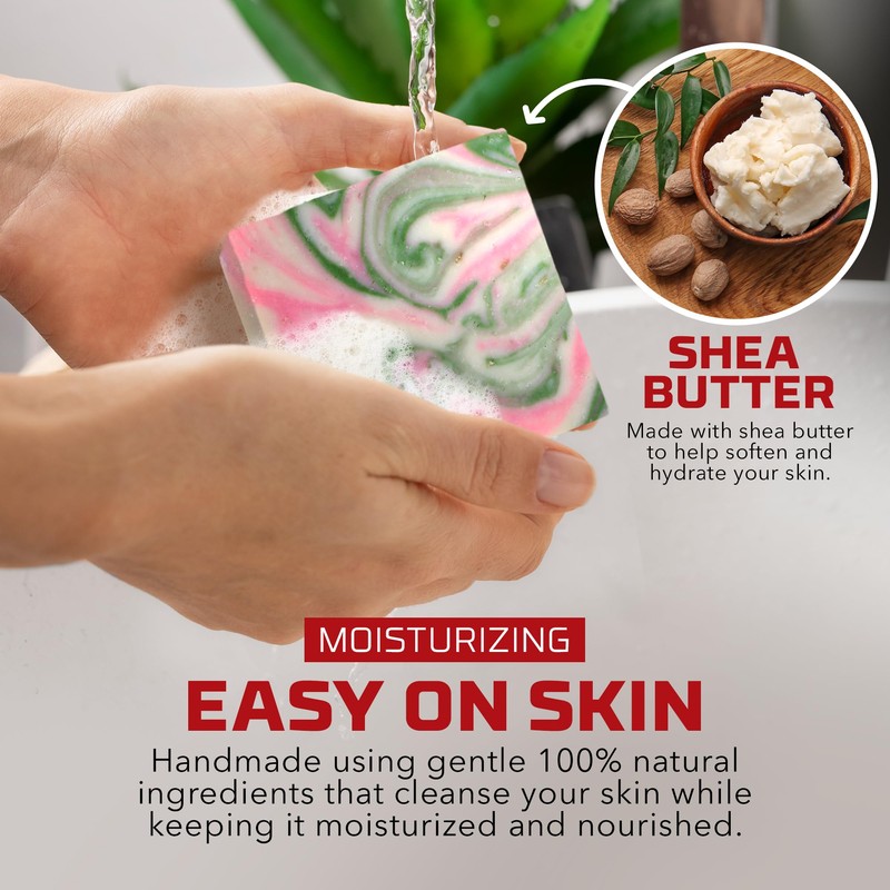 - ALL-NATURAL BODY SOAP BAR: Our handmade soap collection is infused with handcrafted vegan ingredients, including Coconut Oil, Canola Oil, Soybean Oil, Shea Butter, Water, Sodium Hydroxide (Lye) Olive Pomace Oil, Sunflower Oil, and Fragrance. This is nature in a bar!
