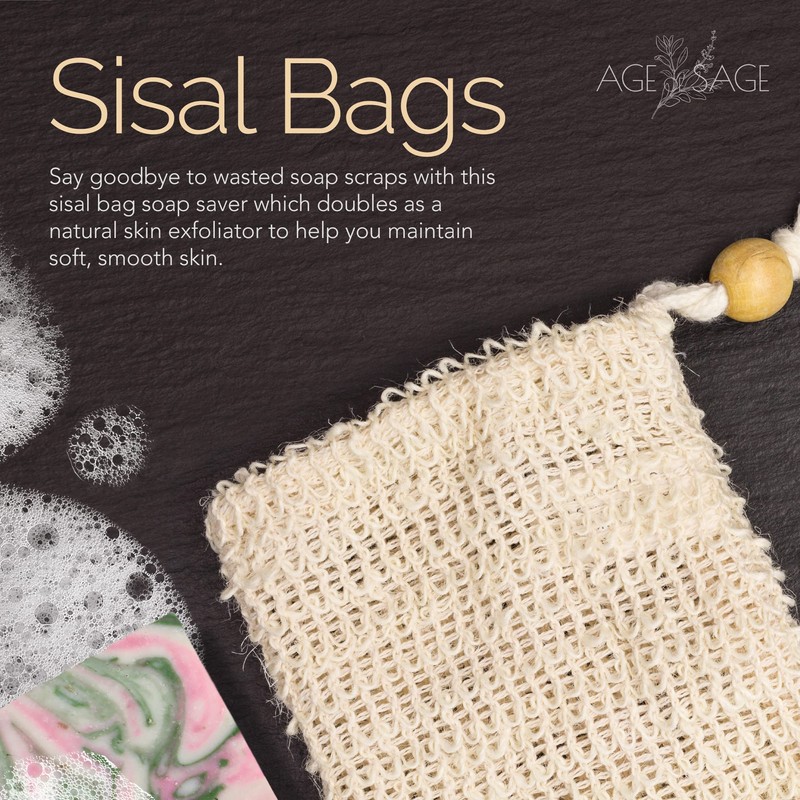 • COMES IN A SOAP BAG: Our shower products each come in a sisal pouch that serves as a body scrubber. Made with natural fiber, the sisal soap pouch lets you slide the soap with an excellent grip as it gently exfoliates your skin. The pouch also serves as a soap saver bag as it enhances the foam lather of soap and helps dry the body bar soap between uses.