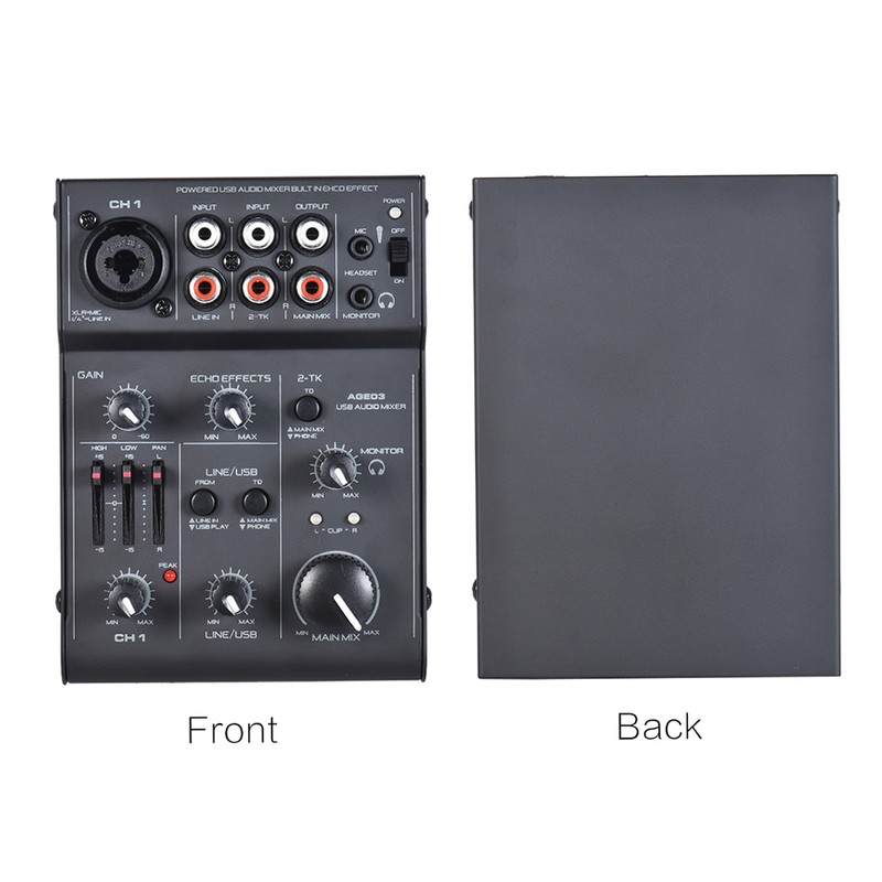 Other features: 2-band EQ(HIGH & LOW) and PAN control; Built-in echo effect; GAIN control; headphone volume control; LED indicator lights; etc.