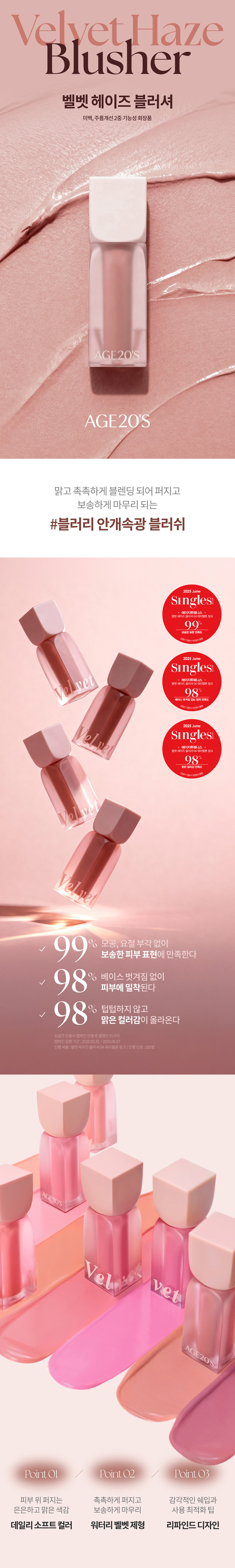 AGE20S 벨벳 헤이즈 블러셔 4.2ml(6종) 01. 누디 피치
