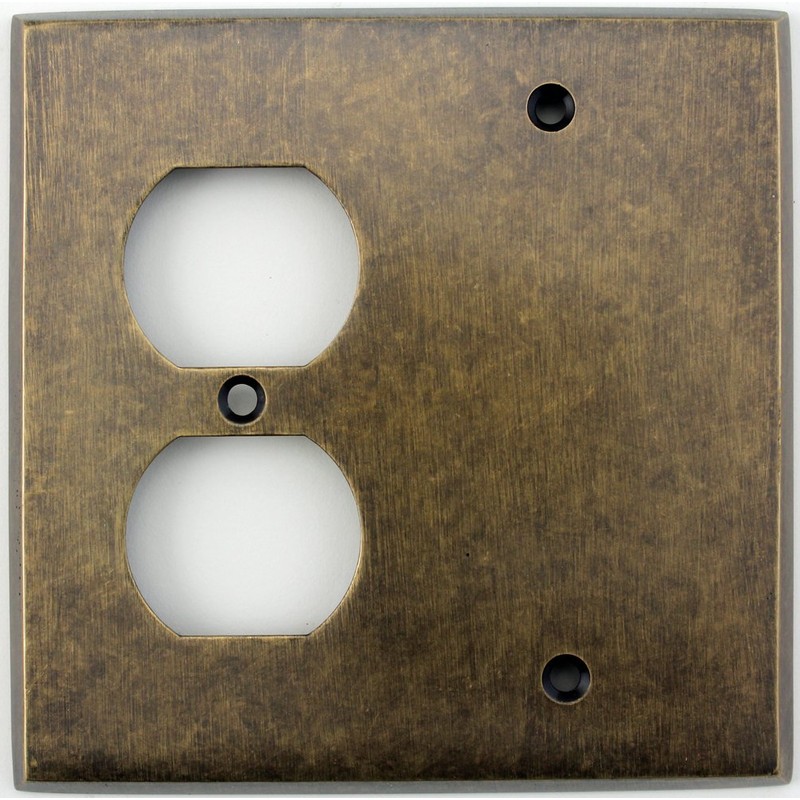 Aged Antique Brass 2 Gang Combination Switch Plate - 1 Duplex Outlet Opening 1 Blank