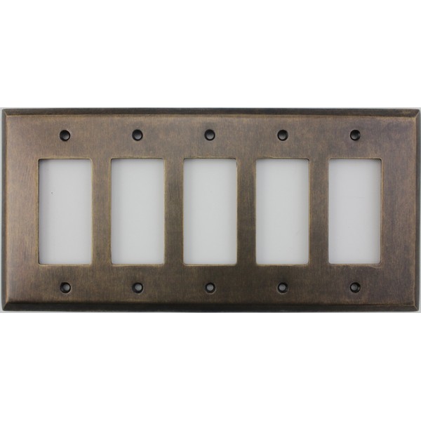 Aged Antique Brass 5 Gang GFI/Rocker Opening Switch Plate
