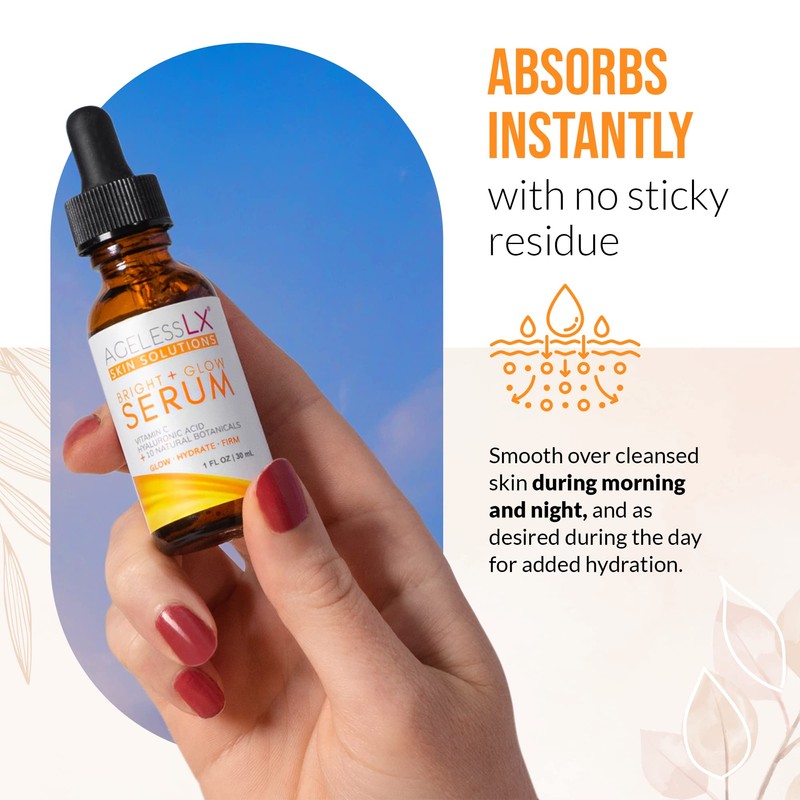 - AgelessLX Bright + Glow is a vitamin c serum for face with hyaluronic acid, expertly crafted from a unique age-fighting blend of natural botanicals that will bring back your youthful glow