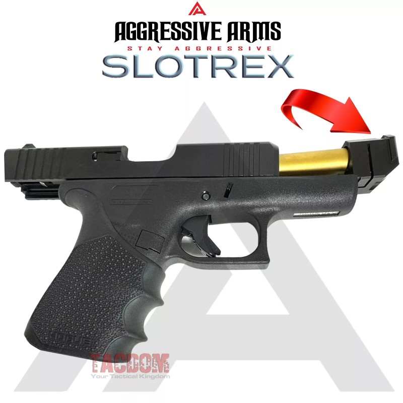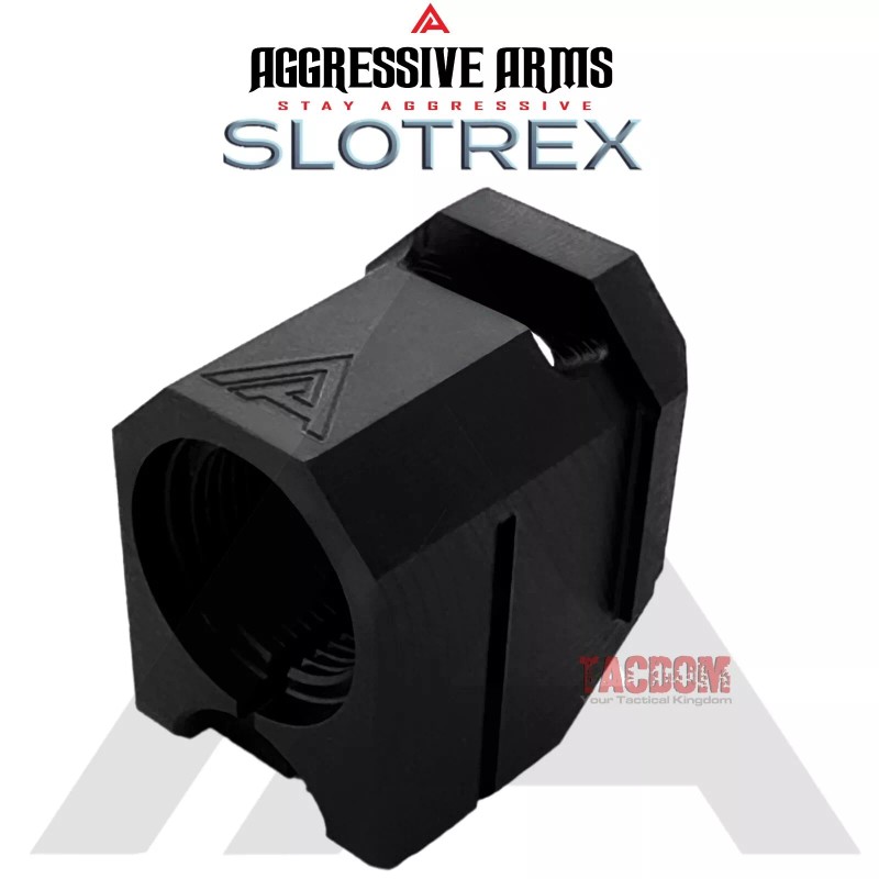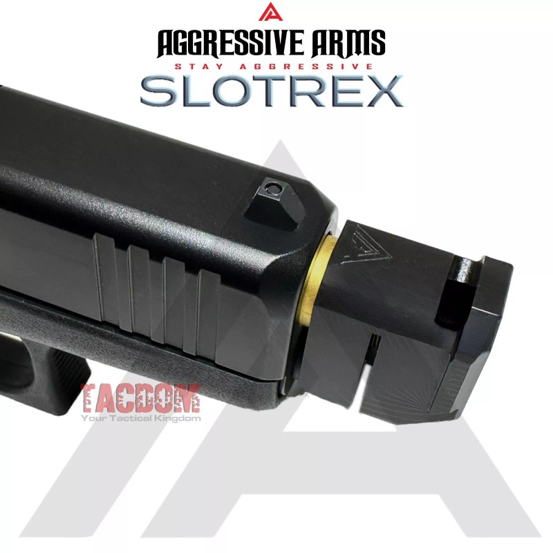 AGGRESSIVE ARMS SLOTREX BLACK COMP 1/2x28 TPI 20-30% LESS RECOIL GL0CK SIG 9mm