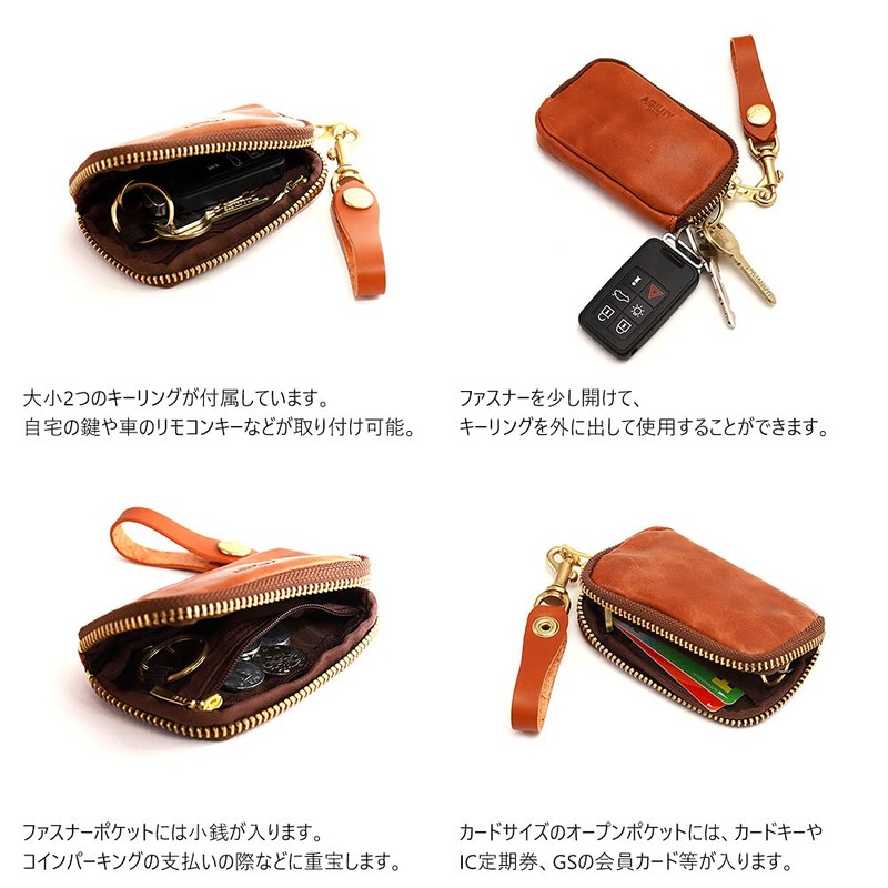 Agility affa "Genty" Key Case, Smart Key Compatible, Coin Purse, Card Case, Multi-Key Case, Genuine Leather, Men's, Women's, Made in Japan, Braun