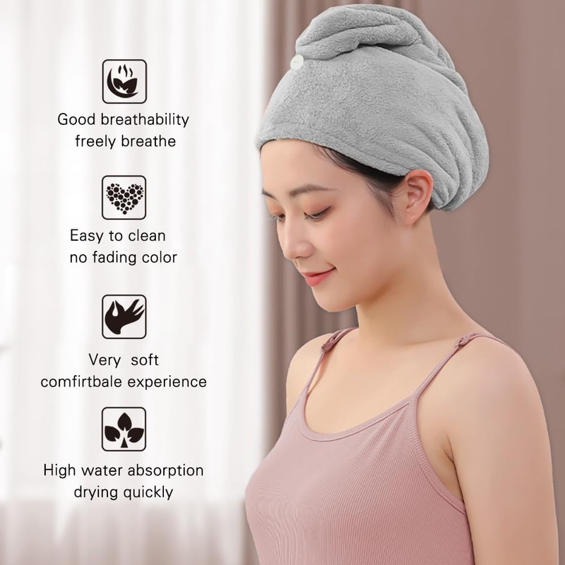 - SUITABLE FOR ALL TYPES HAIR -- No matter your hair is curly, straight, dry, oil, dyed or dyed to super-straight. Hair turbans for wet hair meet the needs of your family.