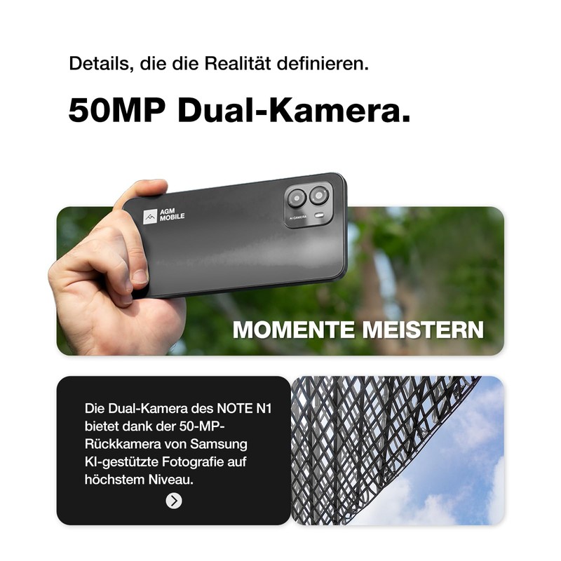 - [Unisoc T606 & 8GB RAM M+128GB ROM] The AGM Note N1 Lite smartphone is powered by a powerful Unisoc T606 processor and an octa-core. Experience fast and efficient performance that allows for an energetic gaming experience and effortless multitasking. With 8GB RAM (4GB RAM + 4GB virtual RAM) and 128GB ROM (up to 256GB expandable memory), the smartphone offers plenty of space for all your favourite files.
