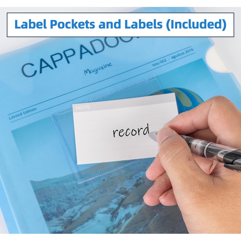 - Label design, practical design: each A4 sturdy file sleeve comes with a label pocket, which contains 16 sheets of writable label paper. This allows you to easily label the contents of the folder and identify the contents of your documents professionally and efficiently.