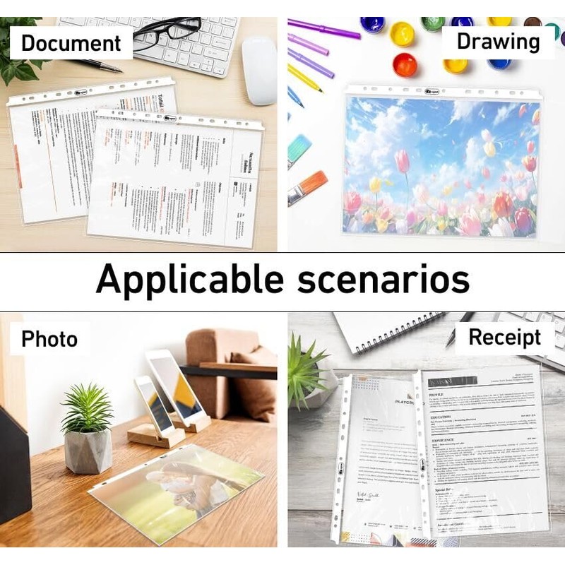 - 11 HOLES FOR BINDERS Our document bag is with 11 holes for binders, so the pocket fits any 2/3/4 ring binder and binder. Multiple files can be easily saved.