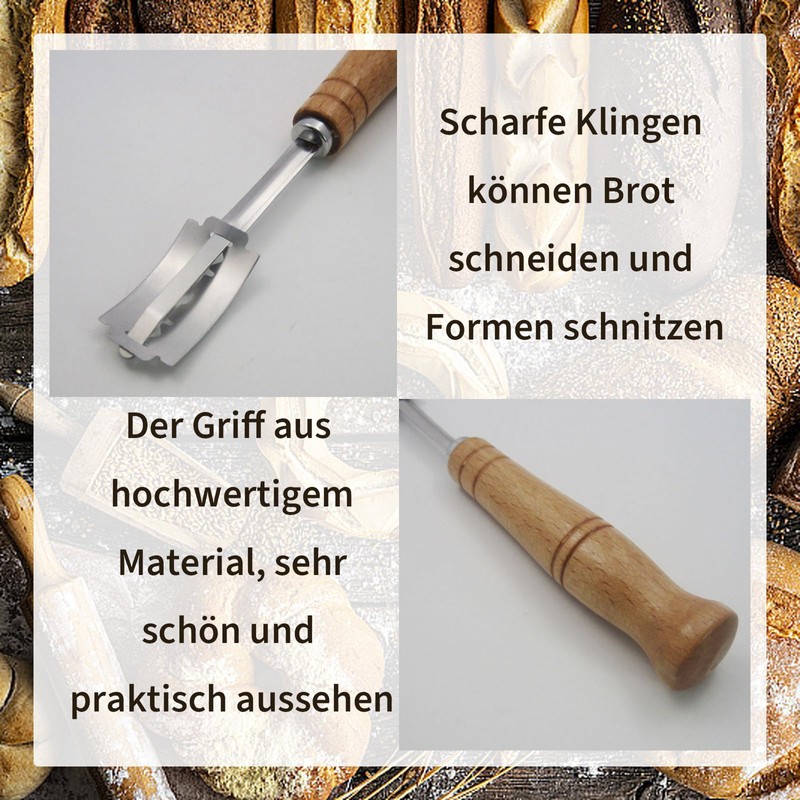 - 【Schnitzt schön】Bäckermesser kann gebogenen Mustern schnitzen. Schneidemessern machen das Schneiden und Schnitzen vielfältiger und Ihr Brot wird schöner! brot ritzmesser ist auch ein tolles Geschenk für diejenigen, die Kunsthandwerk mögen. Sie können es verwenden, um schöne Muster auf Ihr Brot zu gravieren, die nicht nur den Farbwert des Brotes hinzufügen, sondern auch den Appetit auf Brot erhöhen.
