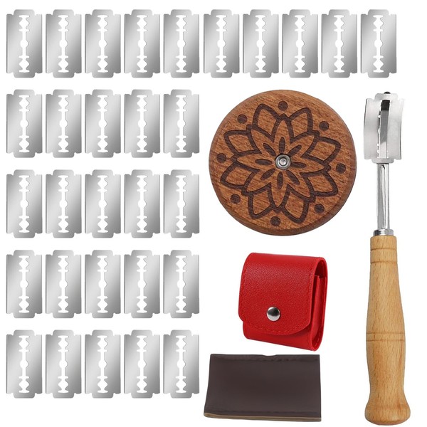 agogue Brot Ritzmesser Zum Einschneiden Brotmesser Ritzmesser Lilienmuster,34 Stückset Bäckermesser, Brot einschneidemesser Scharf Und Langlebig, Mantel 2+30 Klingen+2 Davon Teigmesser Brot