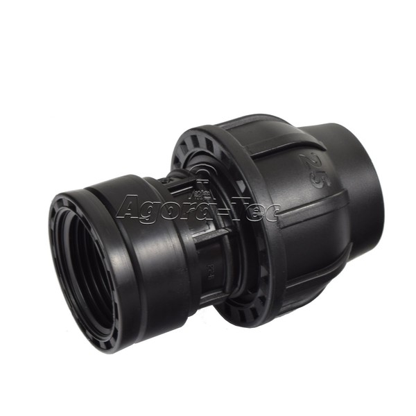 Agora-Tec PE Fitting Coupling 25 mm x 1 Inch Internal Thread (30.3 mm) for PE Pipe 25 mm Black