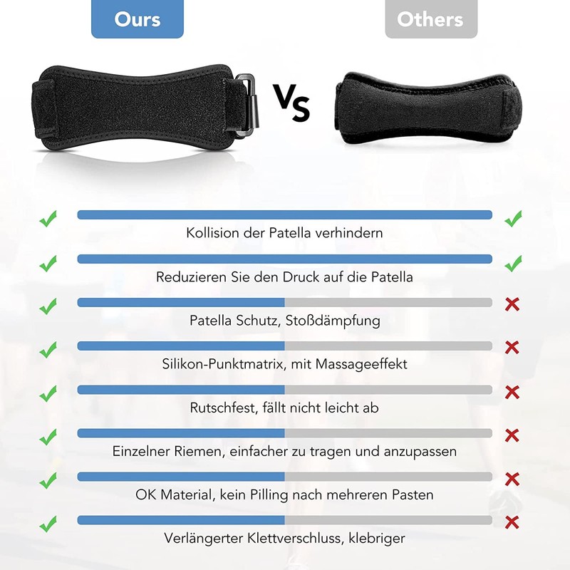 - Adjustable design: our patella knee brace is suitable for a variety of people, the adjustable bandage design can be adjusted to your own needs. Note: The Velcro fastener holds very well but must be put on cleanly.
