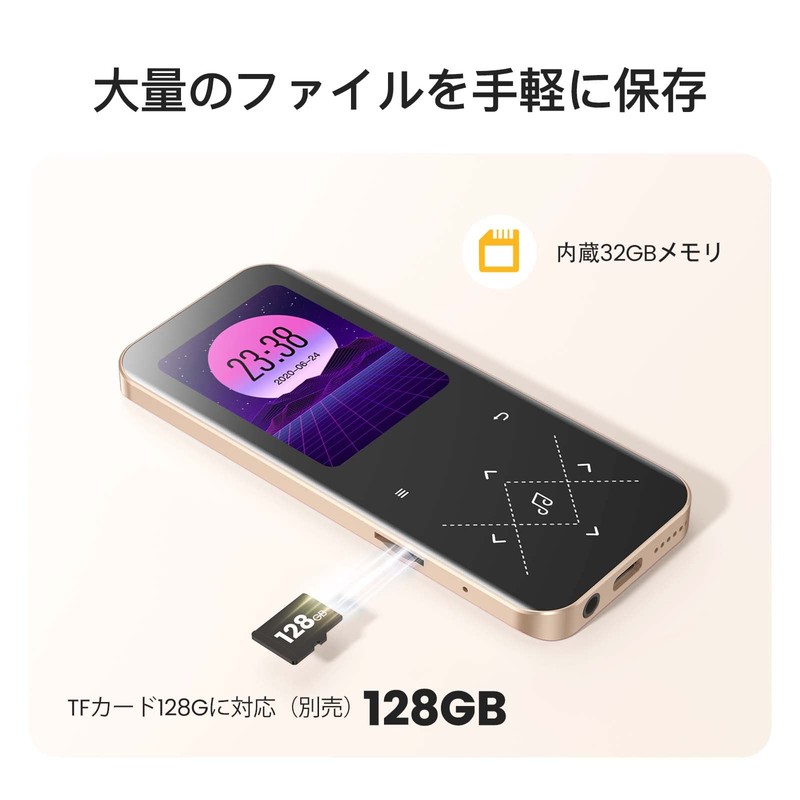 - Luxurious Design & Large Capacity of 32 GB: Made with high quality aluminum alloy and zinc alloy for a better feel. It is not only a premium and great look but also has a richer content. AGPTEK MP3 Music Player offers a large capacity of 32GB and supports TF card expansion up to 128GB (TF card not included) Download thousands of your favorite songs and store a large number of files. This MP3 player has a built-in 500 mAh battery that allows you to enjoy music for about 2.5 hours on a full charge