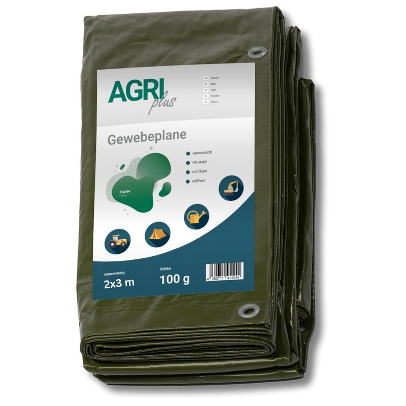 AGRI Plus Fabric Tarpaulin with Eyelets, 2 x 3 m, Various Sizes, 100 g/m² Film Thickness, Sturdy and Tear-Resistant Tarpaulin, All-purpose Tarpaulin for Outdoor Use, Waterproof and UV-Stable