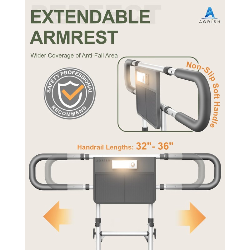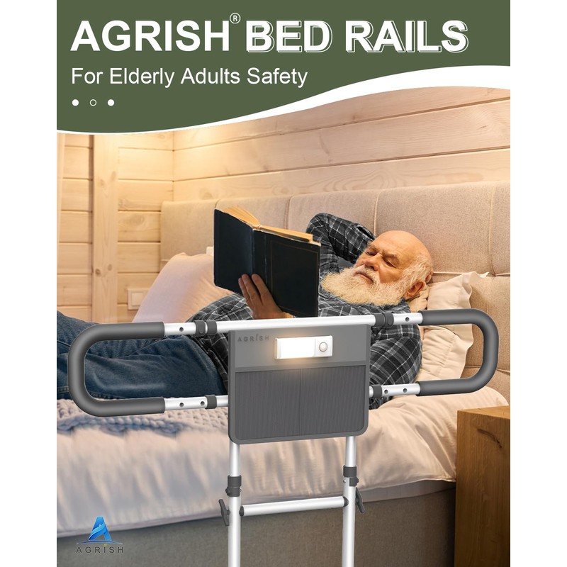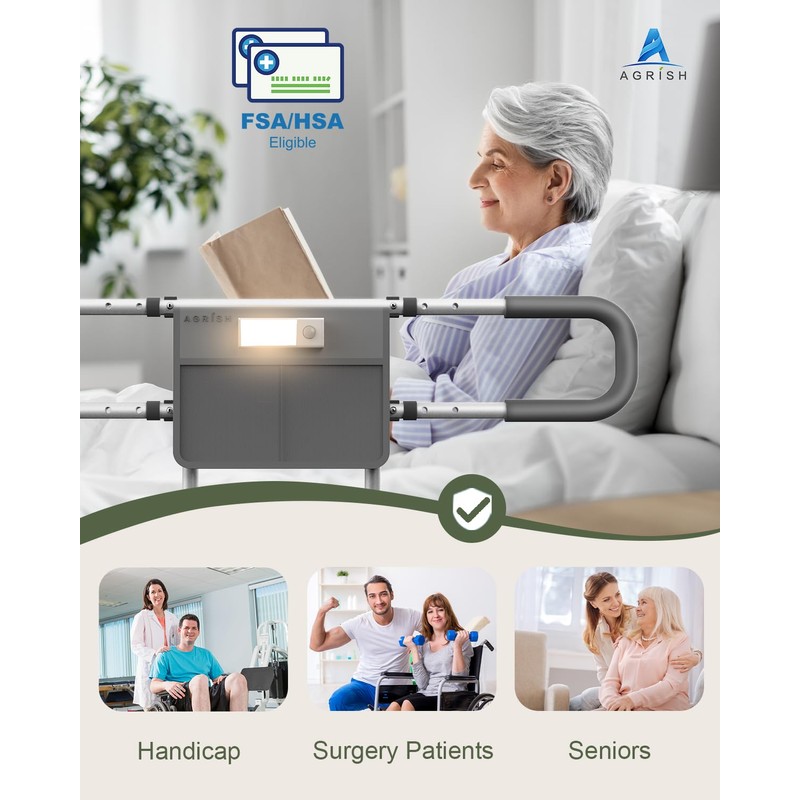 Agrish Bed Rails for Elderly Adults Safety - FSA/HSA Eligible with Motion Light & Storage Pouch - Bed Assist Rails for Seniors, Surgery Patients & Handicap, Fit King Queen Full Twin Bed