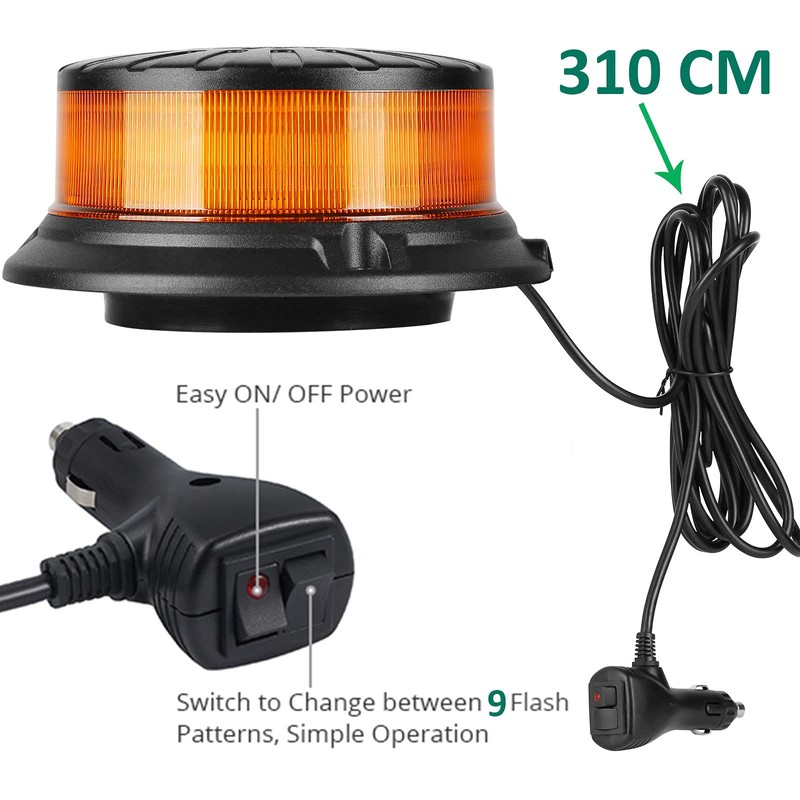 - ★【Imported + 9 function】100% AGRISHOP brand 12V-24V 36W LED flashing rotation revolving beacons for Vans magnetic base, 70mph speed safety. SMD technology 30 LEDs chips with 9 patterns include single flashing, double flashing, quad flash, quick flash. Super bright day and night easy to see with low energy consumption. Size of each light: 52 x 9. 4 mm