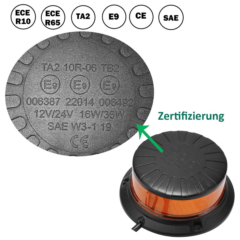 - ★【Certification + Suitable】ECE R65, R10, IP65 E9, TA1, CE for trailers according to European standard, truck trucks, caravans, agricultural vehicles, emergency vehicles, construction site, post, snow plough, forklift, golf cart, UTV, safety, excavator, bulldozer, road roller, bulldozer, crane and mining truck. ATVs, SUVs, forklifts, trains, ships, buses and tanks, fire engines, police cars, rescue vehicles, communication vehicles, etc