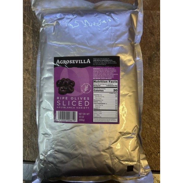 AgroSevilla Ripe Black Olives Sliced 33oz Use By 10/28/2027 aceitunas negro