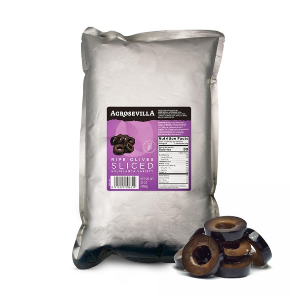 Agrosevilla Sliced Black Olives, Spanish Ripe Black Olives Pre Sliced, Bulk Olives for Pizza Salads Sandwiches Pasta, Mediterranean Olives Ready to Use, 33oz