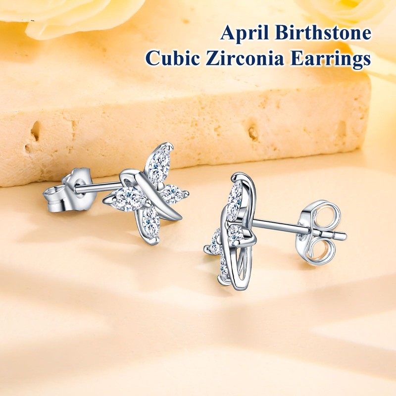 AGRULE Dainty CZ Diamond Earrings for Women Sterling Silver Marquise Cut Birthstone Stud Cute Small Dragonfly Earrings