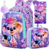 AGSDON 3PCS Kids Backpack, 16" Girl Backpacks for School Elementary with Lunch Box, Water Resistant Koala Bookbag for Preschool