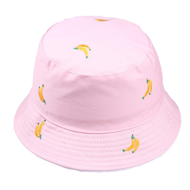 Agshcqi Bucket Hats Embroidered Banana Hat Fruit Sunhat Double-Sided Fisherman Hat Beach Cap