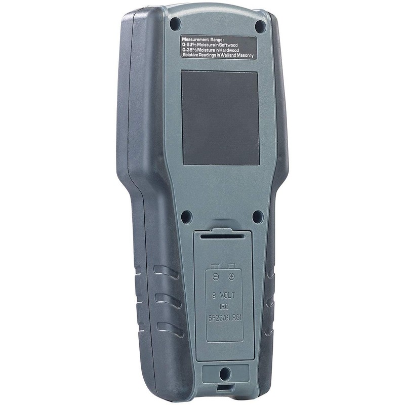- Ideal for checking building materials, furniture, cladding and much more. Measures four building materials: hardwood, softwood, dry walls and masonry (ceilings and walls). Acoustic and optical alarm when the maximum humidity value is exceeded (70% for dry walls and masonry, 17% for wood). Beep sound and LED beams. Grippy, shockproof housing with rubberised sides. Power supply: 1 battery type 9-volt block (not included).