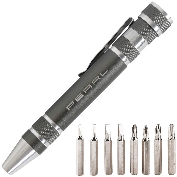 - Practical ballpoint pen format in an elegant design: anthracite and aluminium finish. 8 bits hidden with secure screw cap: 4x cross slot, 4x slot