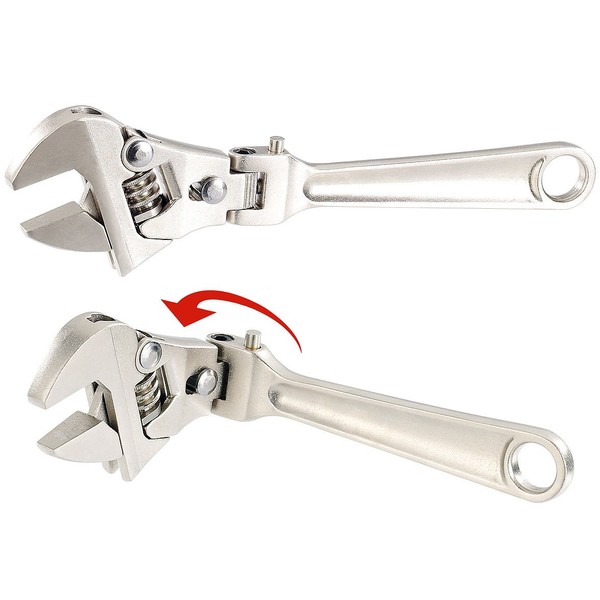 - Flexible open-end wrench for tightening and loosening screw connections. Adjustable wrench head angle
