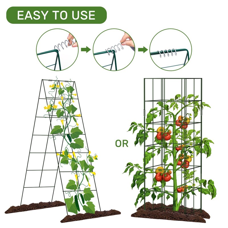 • 【EASY ASSEMBLE】Cucumber Trellis is easy to use and foldable to store. Just connect the 2 panels with the springs. Spin the spring into the junction of the 2 panels.