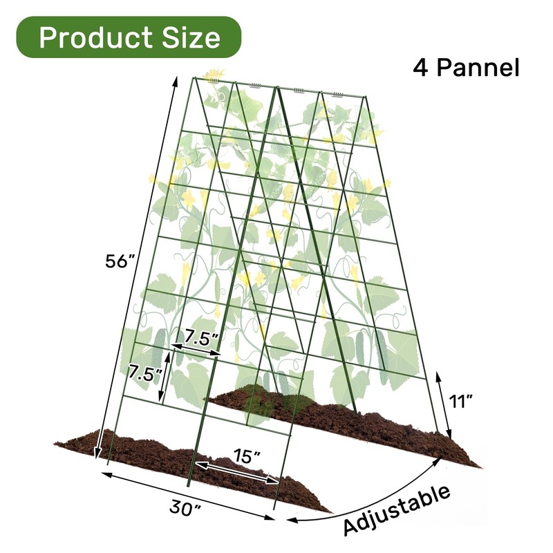 • 【Perfect Size】The trellis is 30" W x 56" L. This a-frame trellis is the perfect size for squash, peas, and tomato, and it will give you extra space below to plant something else.
