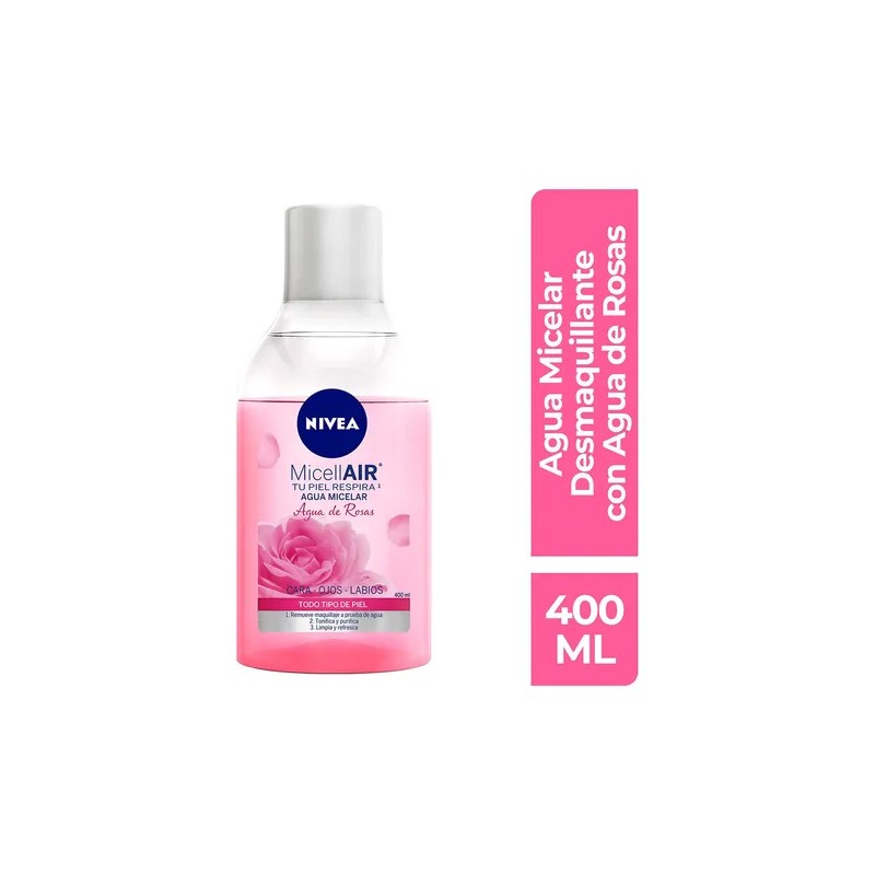 La Agua Micelar Nivea con Agua de Rosas es un limpiador facial que elimina eficazmente el maquillaje, incluso el resistente al agua, sin necesidad de frotar. Su fórmula con agua de rosas tonifica y purifica la piel, dejándola suave y fresca. Apta para todo tipo de piel, incluso las más sensibles.nivea.com.ec+6Falabella+6Mercado Libre+6