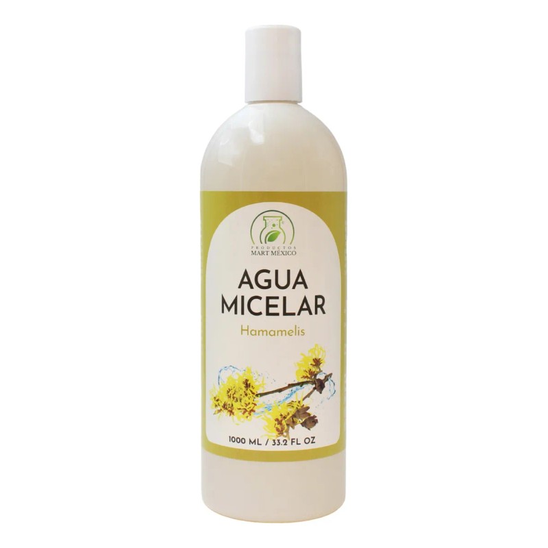 Agua Micelar Hamamelis Hidratante, 1 Litro. Limpia, desmaquilla, purifica. Con hamamelis: calma, controla grasa, cierra poros. Piel fresca, suave e hidratada.