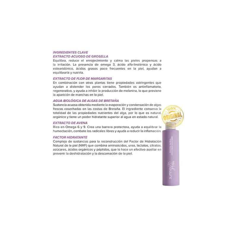 humectación, combate los radicales libres y ayuda a reducir la inflamación.
