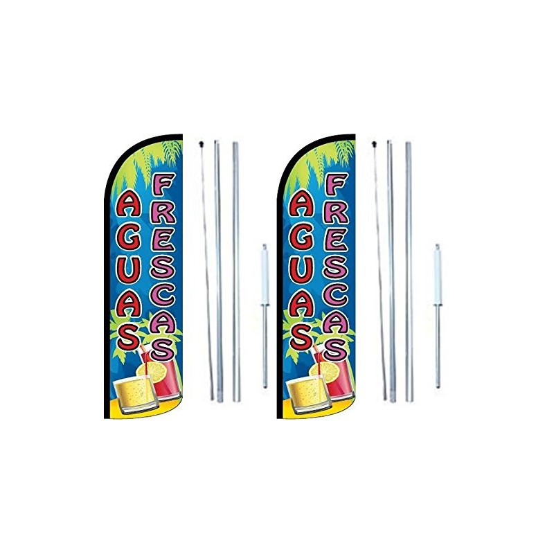 Aguas Frescas Pack of 2 Windless Flags | 3 ft by 11.5 ft Advertising Aguas Frescas Flags for Business | Weatherproof Polyester Aguas Frescas Flags | Outdoor Flags (Complete Hybrid Pole Set Included)
