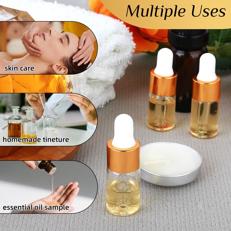 SUITABLE FOR MOST LIQUIDS: These dropper bottles have a capacity of 1ml, perfect for storing a variety of liquid products such as essential oils, perfume oils, cosmetics, samples and other liquids.