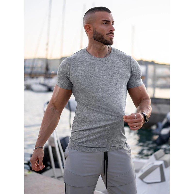 AHA SELECTED Softest Sunday Performance™ Men's T-Shirt Utmost Softness Slim Round Neck T-Shirt-Grey-M