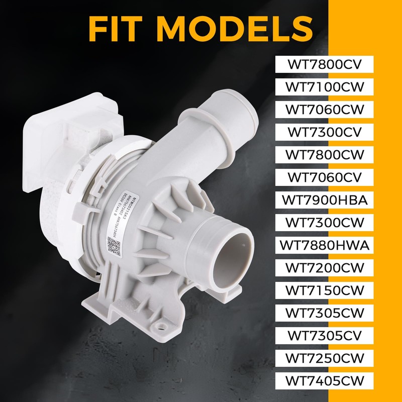 Compatible with LG Washer Drain Pump Model:WT7400CW, WT7400CV, WT7405CV, WT7405CW, WT7900HBA, WT7155CW, WT7300CW, WT7305CV, WT7880HWA, WT7800CW, WT7005CW, WT7300CV, WT7060CV, WT7305CW, WT7250CW, WT7150CW WT7200CW, WT7800CV, WT7100CW, WT7060CW, etc.