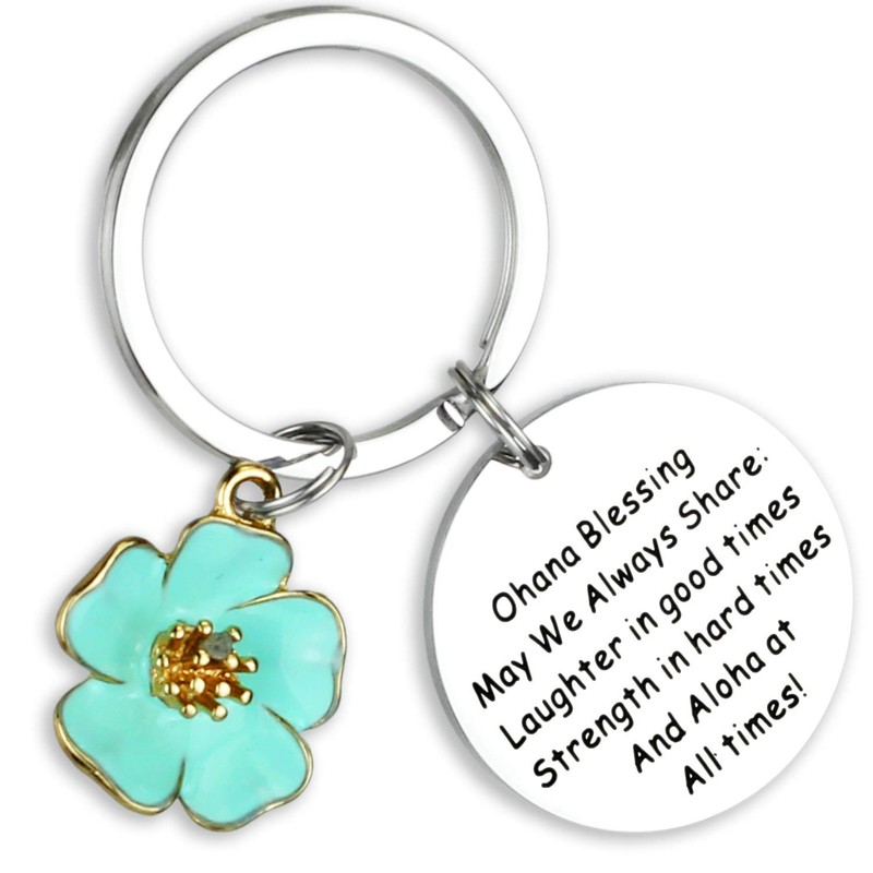 AHAETH Ohana Keychain Hawaiian Flower Keychain Blessing Gifts Hibiscus Charm Keychain Hawaiian Ohana Jewelry Gift for Family Hawaii Gifts for Women Ohana Jewelry Stainless-steel