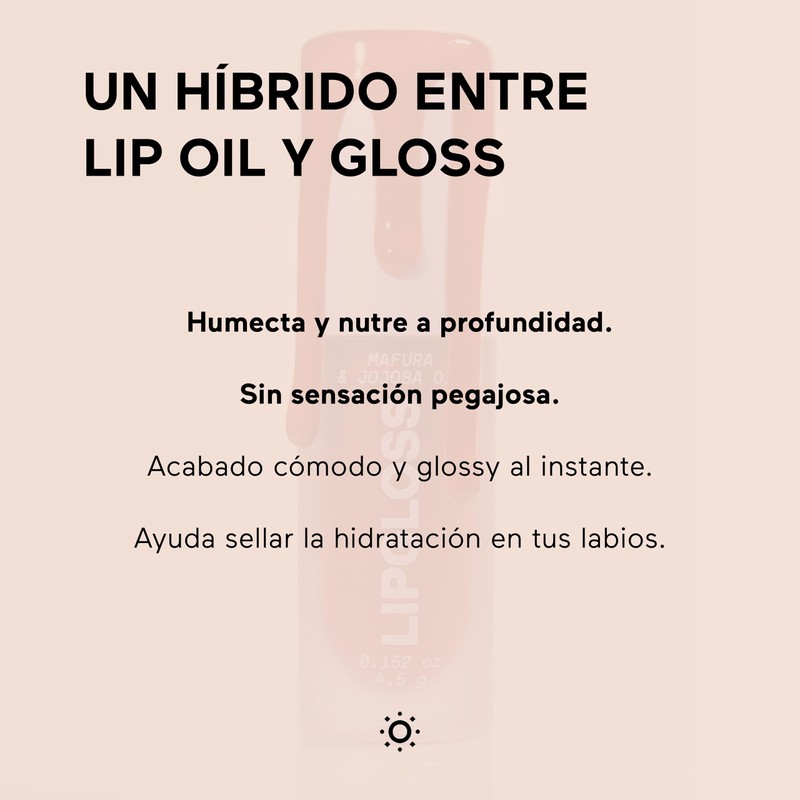 - HÍBRIDO LIP OIL & GLOSS – Combina el brillo duradero de un gloss con la nutrición profunda de un lip oil para labios suaves y radiantes.
