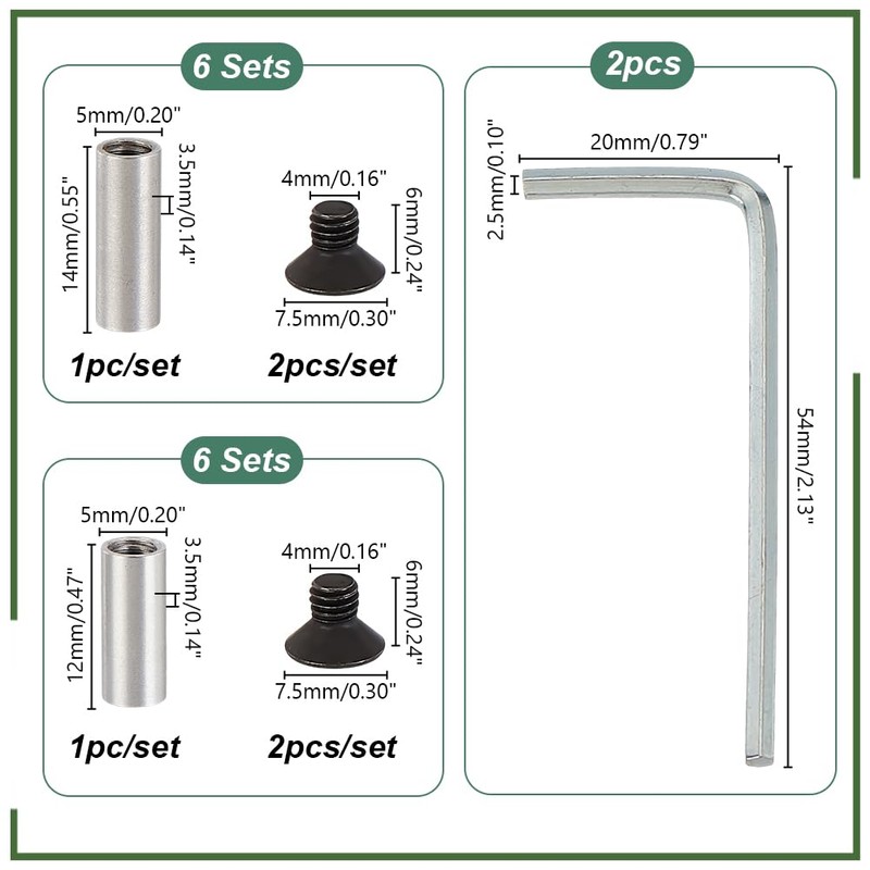 - Package Include: You will receive 12pcs knife handle bolt rivets and 2pcs of hexagonal wrenches to provide you with the necessary components for your project. The bolt rivets are available in 2 sizes, 0.47x0.2 inches (12 x 5 mm) and 0.55x0.2 inches (14 x 5 mm)