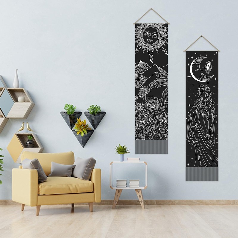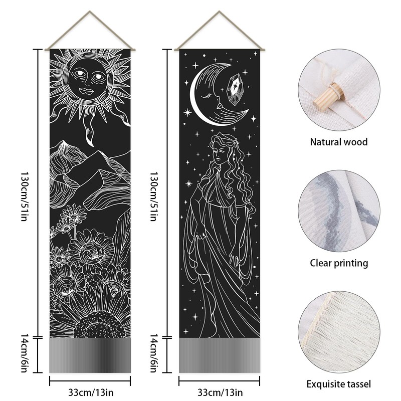 - Convenient hanging: The sun and moon tapestry is decorated with hanging rods and lanyards at the top, so that you can easily hang it on the wall, and it is easy to take care of, and the hanging position can be adjusted at any time.