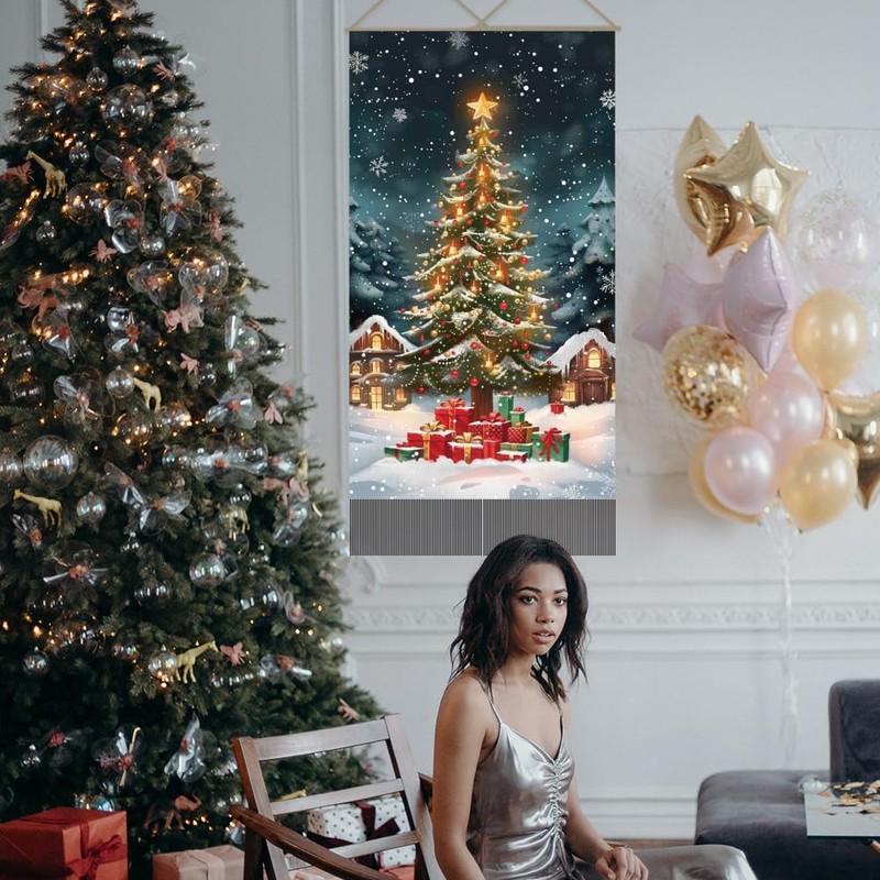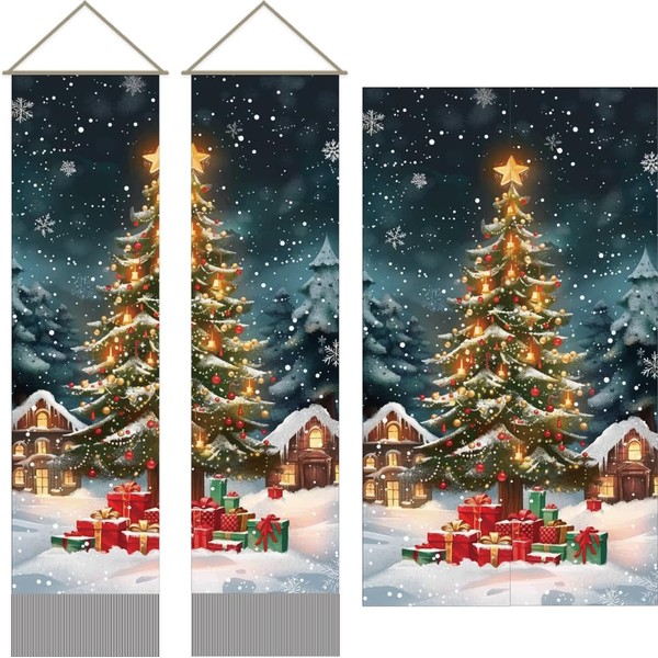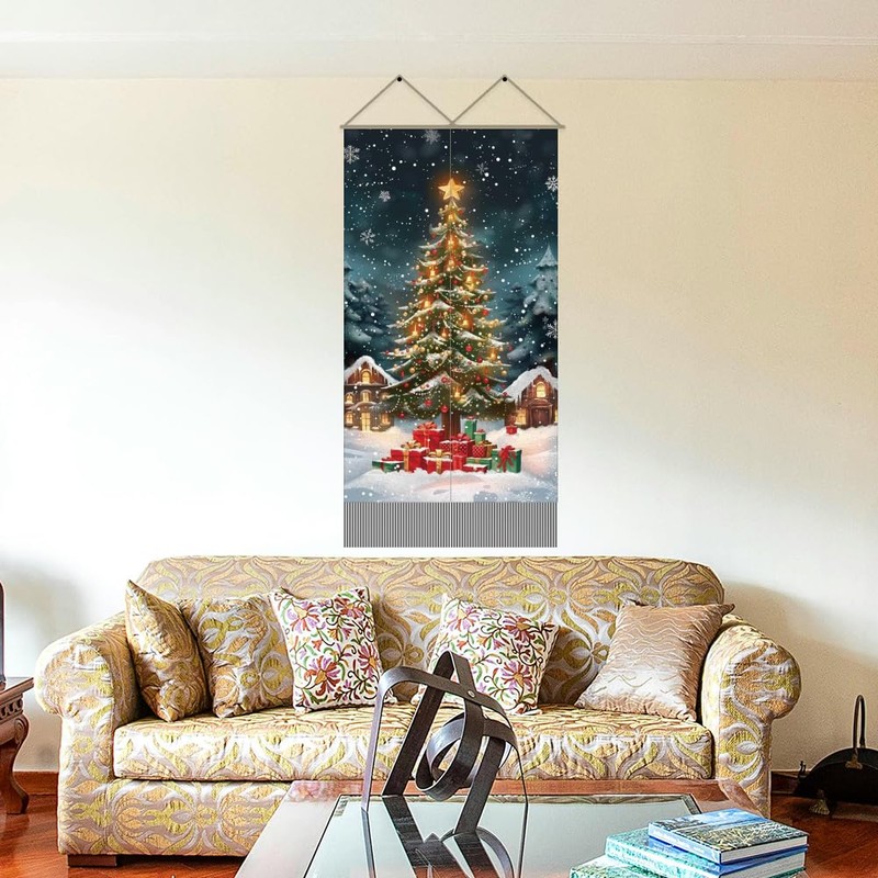 AHANDMAKER 2 Tapestries With Christmas Theme. Christmas Tree Long Vertical Tapestry Tapestry With Tassel And Snowflakes Gift Box Aesthetic Tapestry(45.7x13(5)cm)