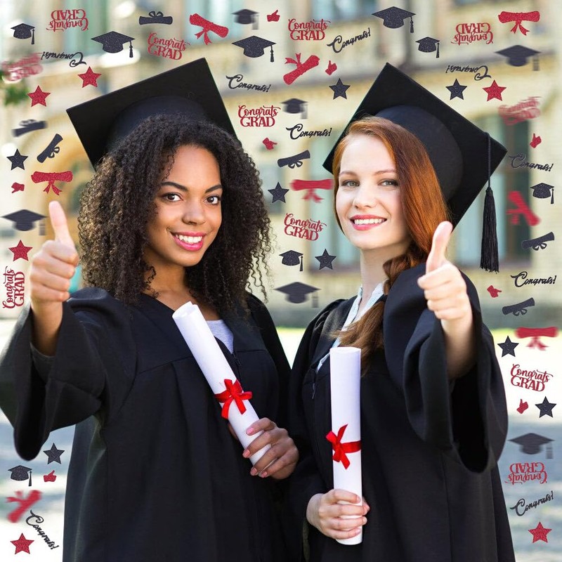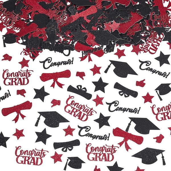 - Red and Black Color Scheme: Bring a classic of color to your celebration with these red and black graduation confetti pieces. A fun and energetic combination to brighten up your party. Good color combination and exquisite design make them nice decorations