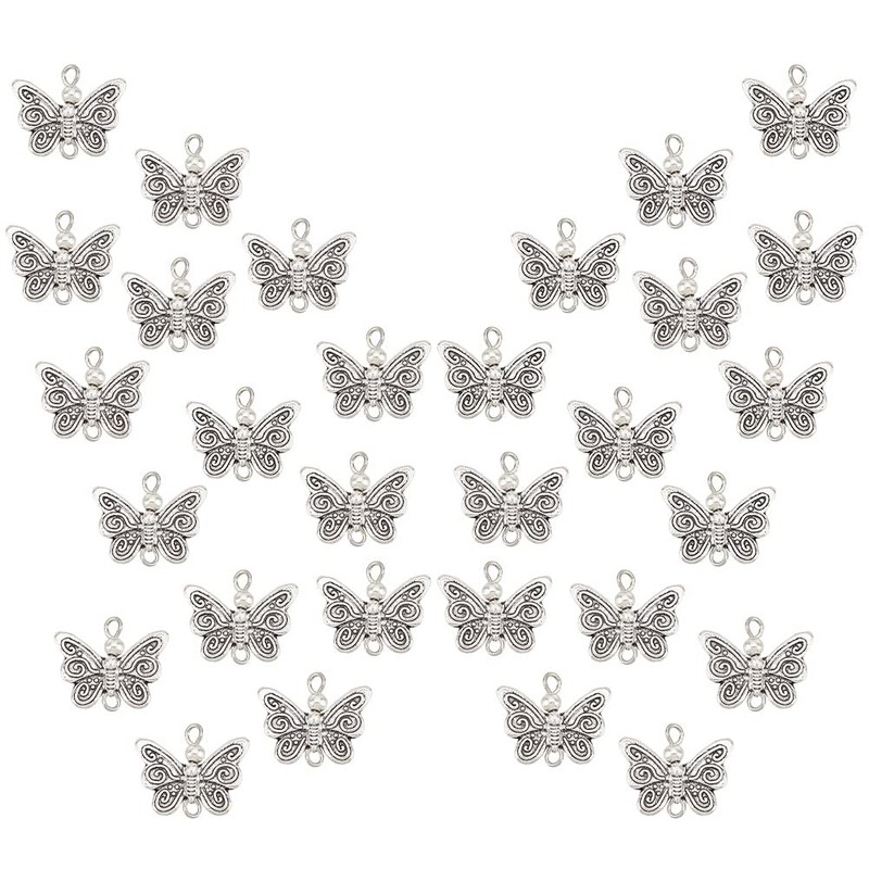 AHANDMAKER 30 Pcs Butterfly Connectors Charms, Alloy Butterfly Link Charms with Brass Double Loops, Tibetan Style Connector Pendants for DIY Jewelry Bracelets Necklaces Keychain Making, 15x17mm